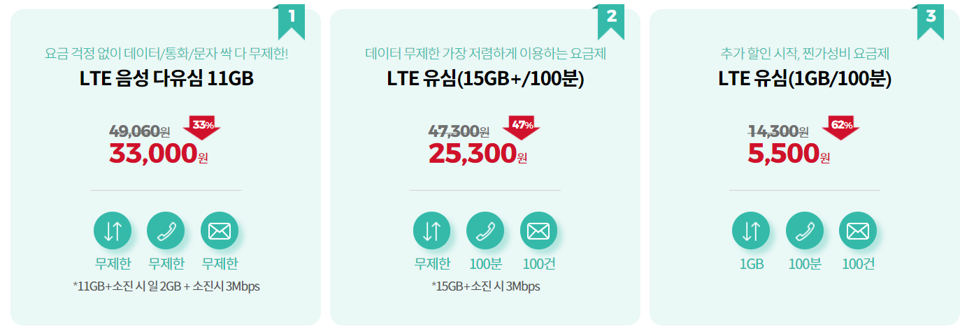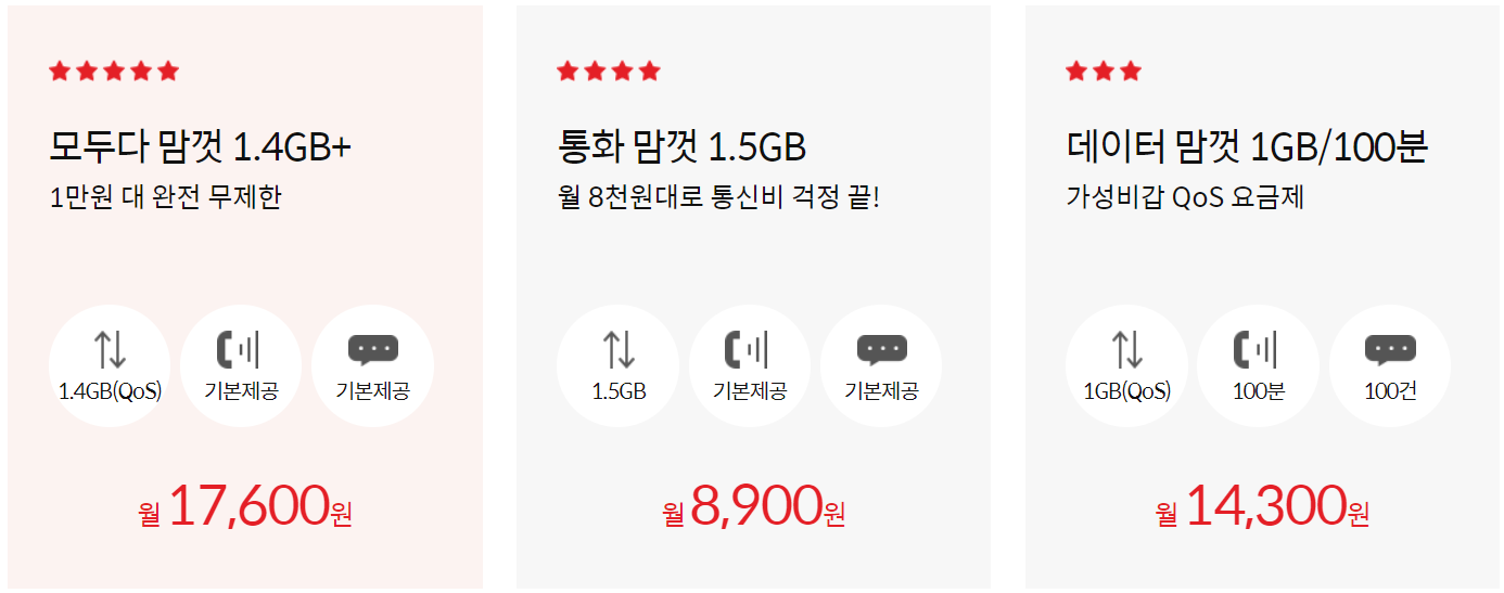 우리가 원래 쓰는 3 통신사에 비해 통신비가 평균 2~3만 원 정도 저렴한 것을 확인할 수 있습니다!