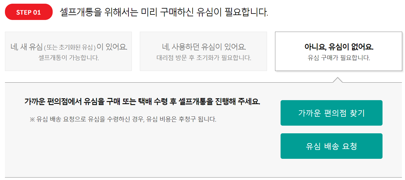 만약 그럴 수 없는 환경이면 유심 배송 요청으로 1~2일 기다렸다가 유심을 집으로 배송받으면 됩니다!