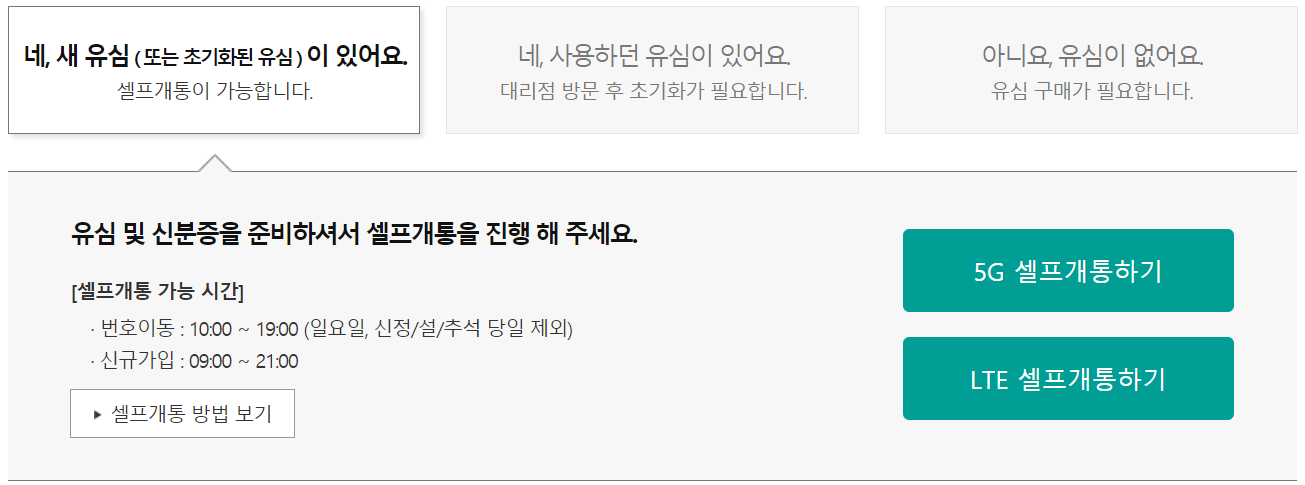 셀프 개통 가입하기 버튼을 눌러 가입하는 곳으로 이동을 해줍니다