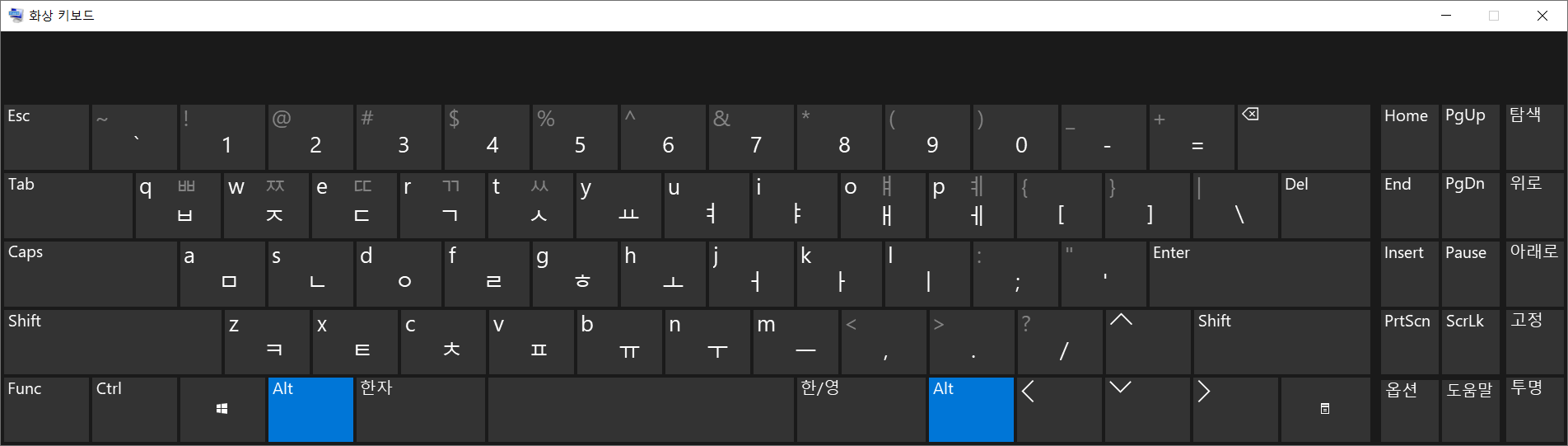 그 후 화상키보드를 종료하고 재부팅 후 다시 키보드로 글자를 쳐보면?