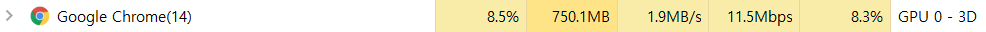 크롬보다 무려 약 8배를 많은 메모리를 사용하네요