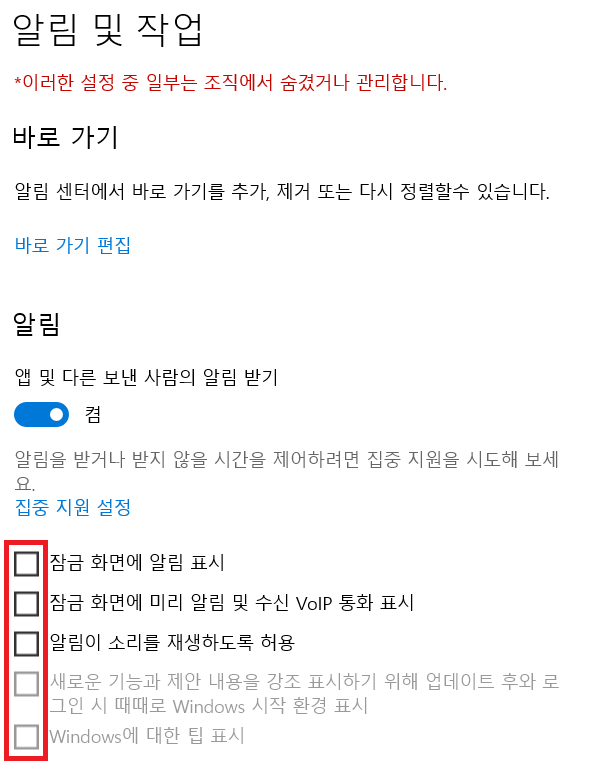 윈도우 10은 기능이 너무 많아서 쓸데없는 알림이 너무 많이 뜨기 때문에