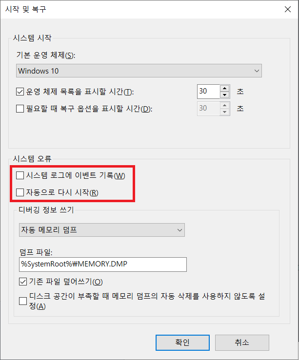 다음 그림처럼 시스템 오류의 체크를 모두 해제해주시면 완료!!