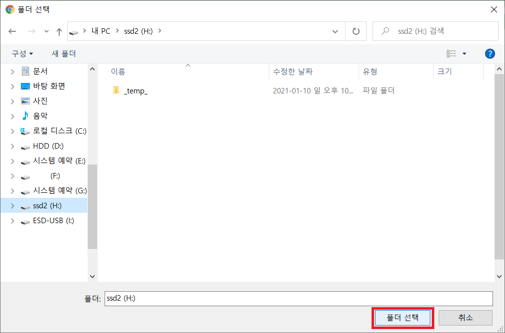 다음 자신이 원하는 폴더를 선택해 줍니다