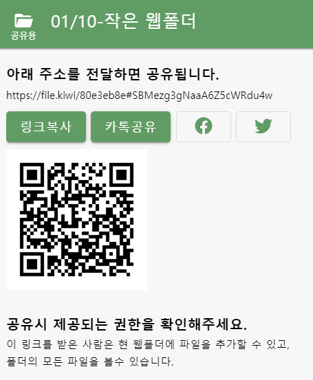 이렇게 링크 복사도 있고 카톡 공유도 있고 QR코드도 있네요