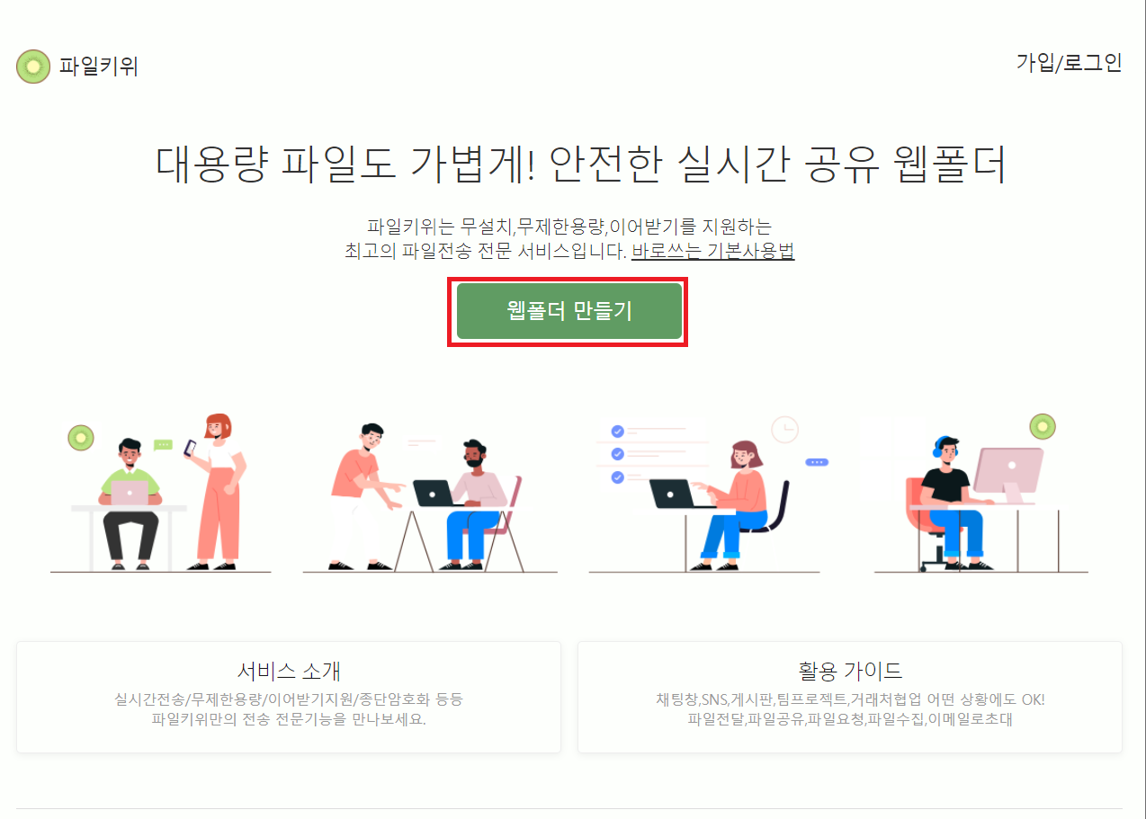 실시간 대용량 웹폴더를 사용해보세요. 무가입,무설치,무제한용량