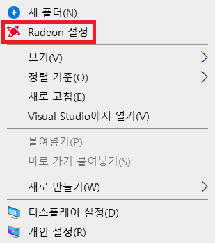 여기서 'Radeon 설정'을 한번 클릭해보자(Geforce 그래픽카드 사용자는 Geforce 설정을 눌러주자)