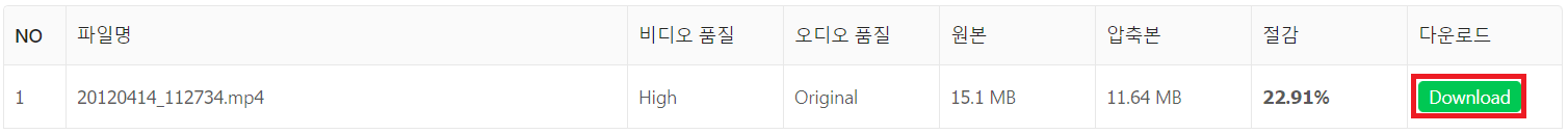 조금 기다려주면 다음과 같이 원본의 크기와 압축본의 크기가 나오고 절감 퍼센트를 알려준다