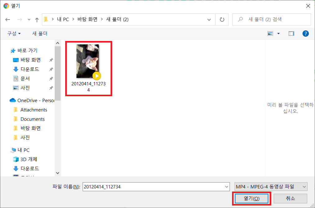 자신이 원하는 동영상 파일을 선 턱 해주고 열기 버튼을 눌러준다