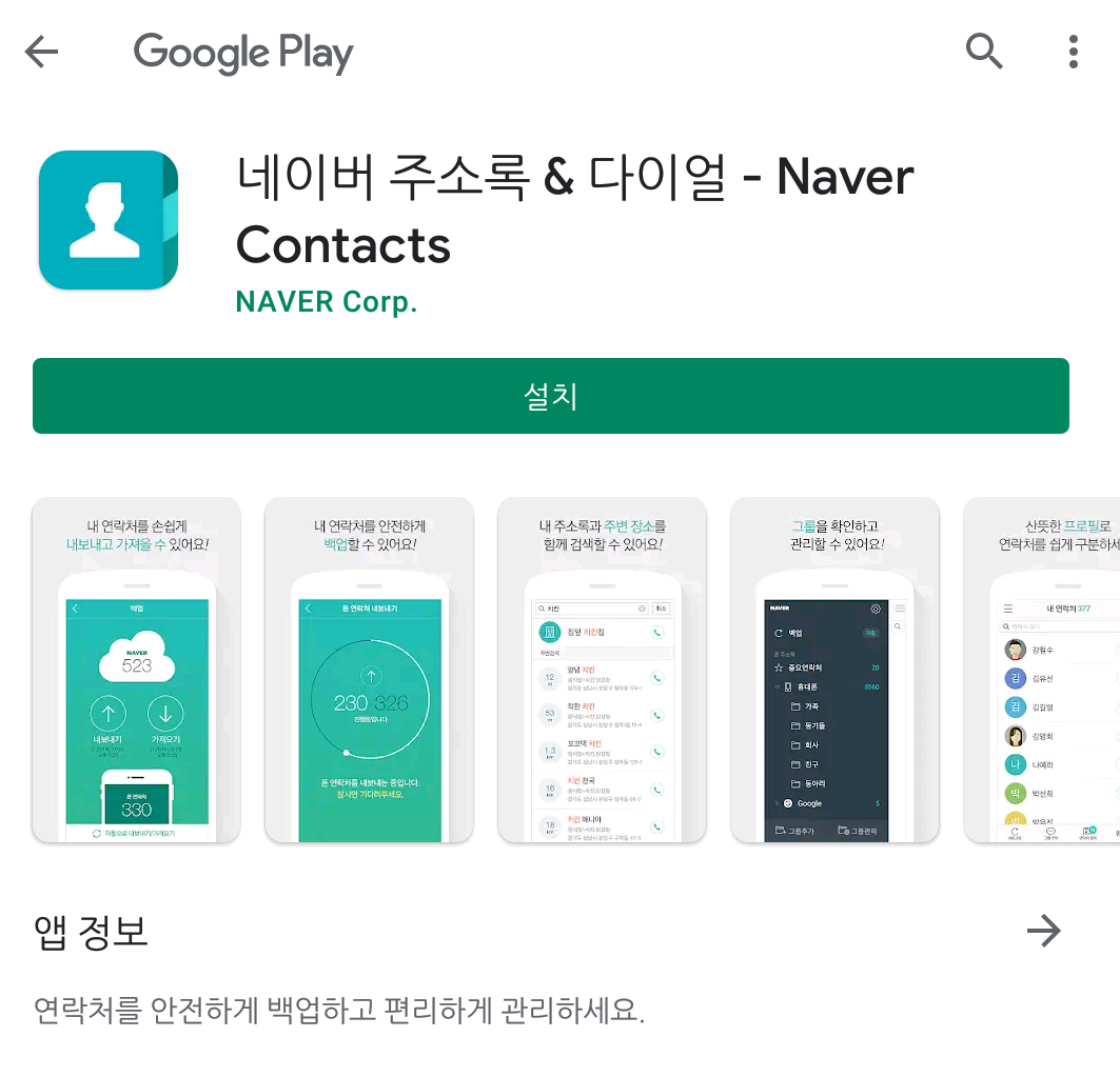 어플의 이름은 바로 네이버의 '네이버 주소록(Naver Contacts)' 이다