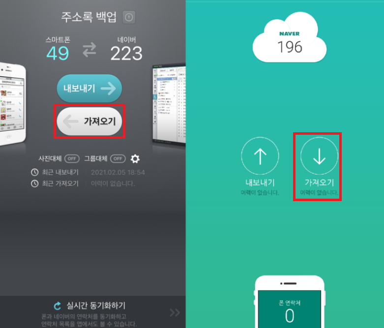 우선 자신의 휴대폰에 있는 전화번호부를 네이버 상으로 옮겨야 한다