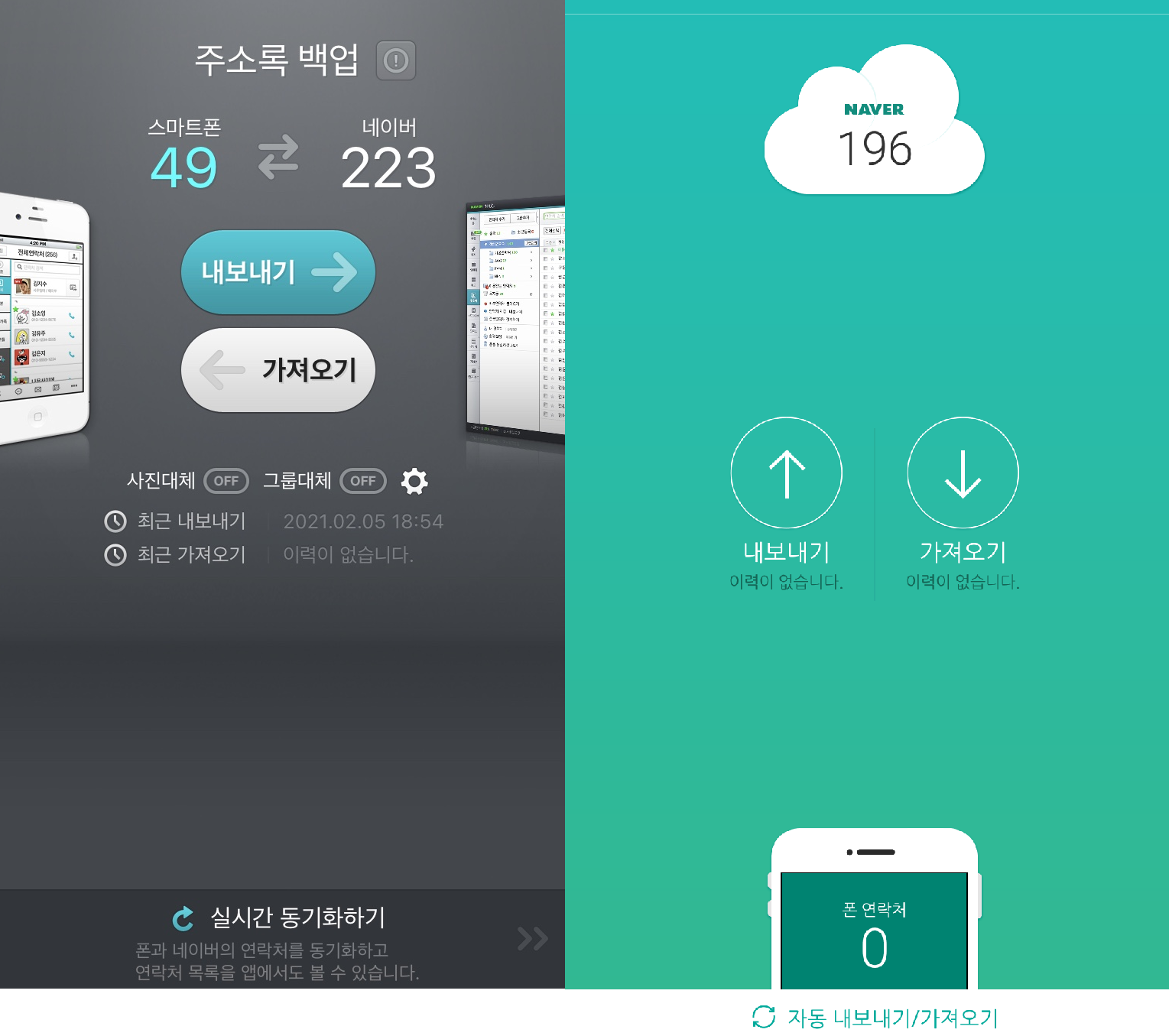 이제 내 휴대폰의 전화번호부는 내 휴대폰과 네이버에 동시에 존재하게 된다