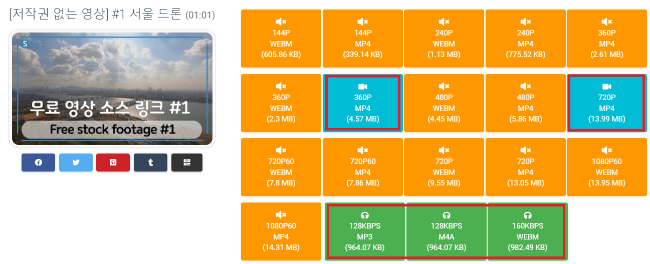 여기서 내가 동영상을 원한다면 파란색 버튼(360P, 720P)을 클릭하고