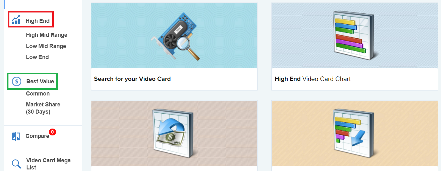 우리가 알아볼 것은 성능 순위(High End)와 가성비(Best Value) 순위이다
