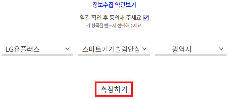 그다음 '측정하기'버튼 클릭을 해준다