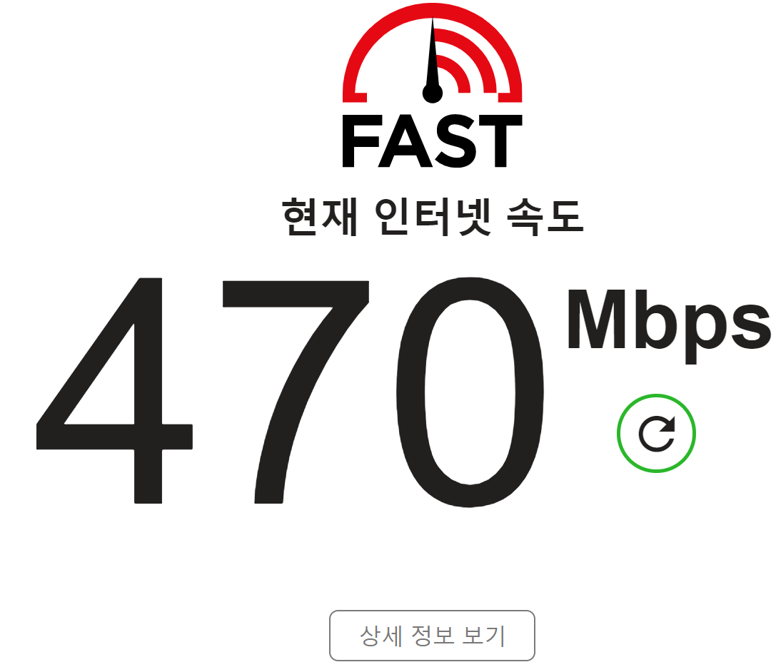 위 그림은 fast.com에 접속한 화면이다
