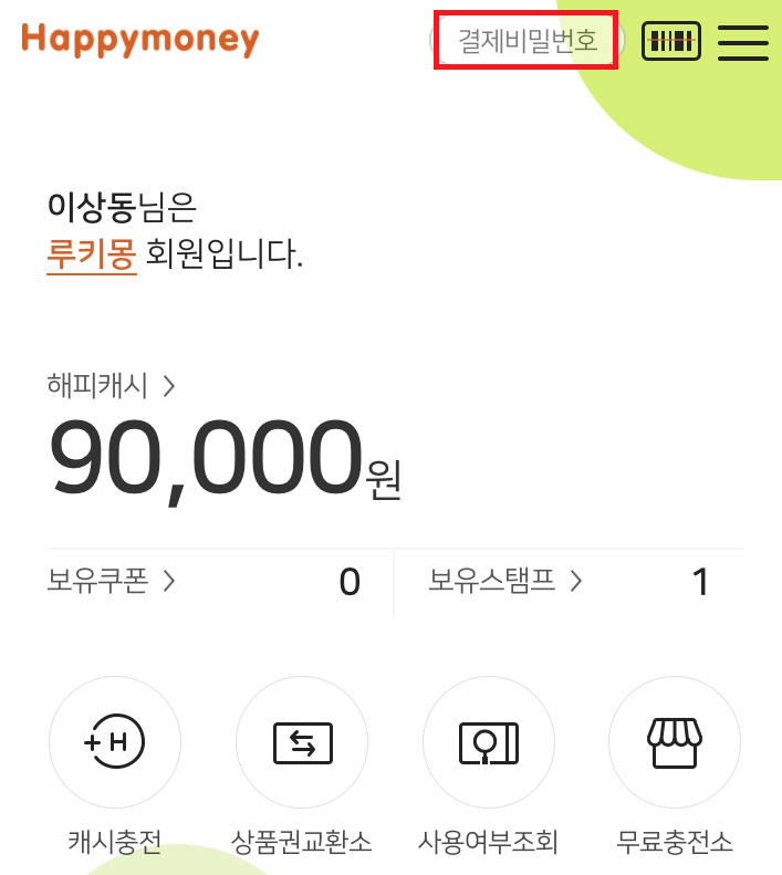 이제 해피머니 사이트의 아이디와 '결제 비밀번호'를 입력해서 사용해주자