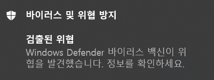 Windows Defender 바이러스 백신이 위협을 발견했습니다. 정보를 확인하세요.