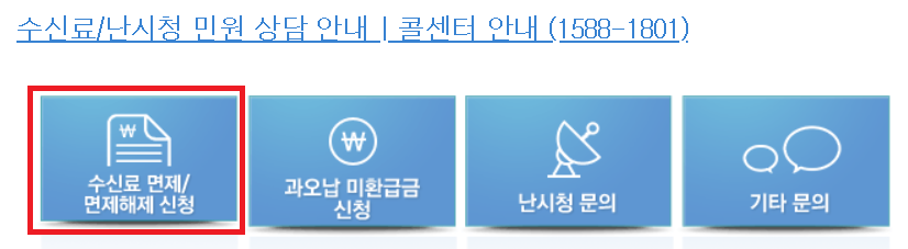 들어왔다면 위 그림처럼 '수신료 면제/면제해제 신청'버튼을 눌러서 들어가주자