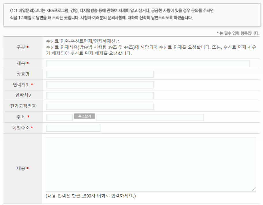 제목은 TV수신료 면제 신청과 같이 작성하면 되고, 내용도 집에 TV가 없으니 수신료를 해제해달라고 적자
