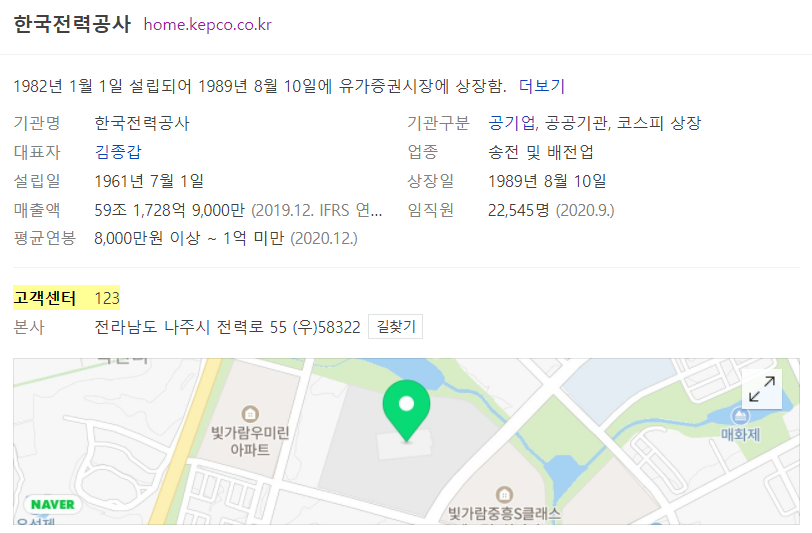 [1] 한국전력에 전화하기