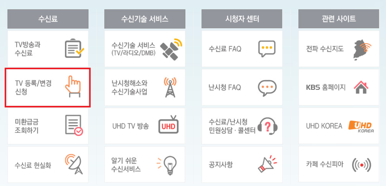 이제 수신료탭의 'TV 등록/변경 신청'을 눌러주도록 하자