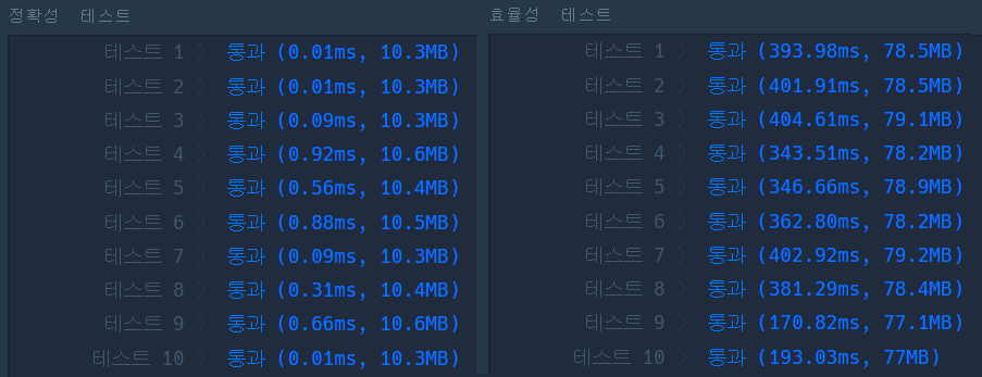효율성 까지 통과하는 것을 확인 할 수 있다