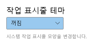 작업 표시줄 테마는 화면 밑에 있는 작업표시줄 색이 바뀌는 건데 '꺼짐'으로 하는 걸 권장드립니다