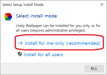 다음 창에서 Install for me only (recommended)를 클릭해주고