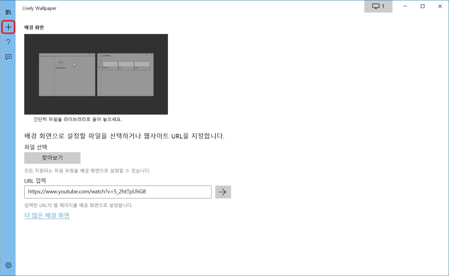 유튜브 동영상을 배경화면으로 만들고싶다면 URL 입력에 해당 주소를 넣어주면 되겠습니다