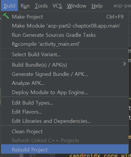 그 후에 Rebuild Project를 해주면 오류가 사라진다