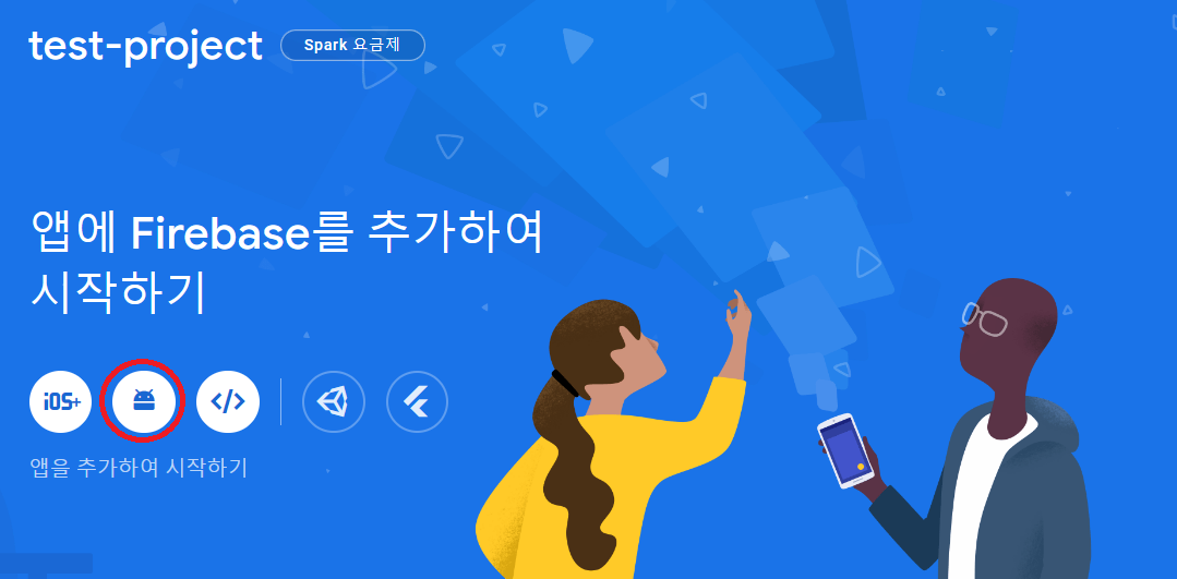우리는 Android를 연결할 예정이기 때문에 좌측 중간에 있는 안드로이드 버튼을 눌러 들어가줍니다