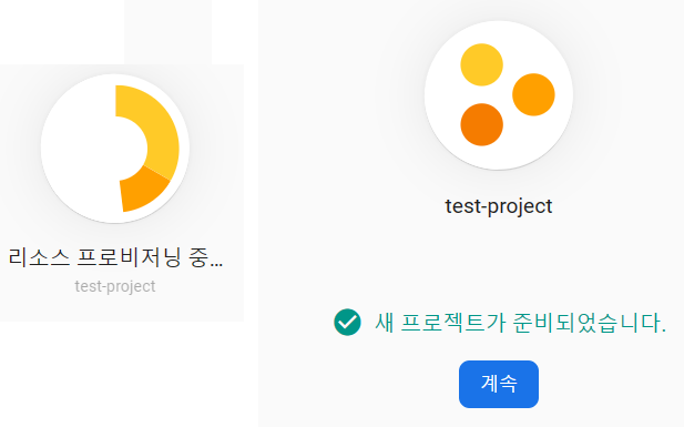그럼 이렇게 리소스 프로비저닝을 하다가 완성되면 프로젝트가 준비되게 됩니다