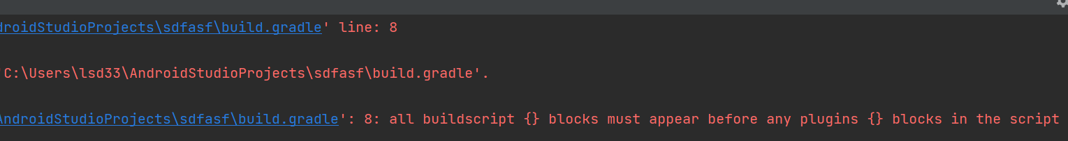 buildscript {} block은 plugins {} block 전에 나타나야한다고 하네요