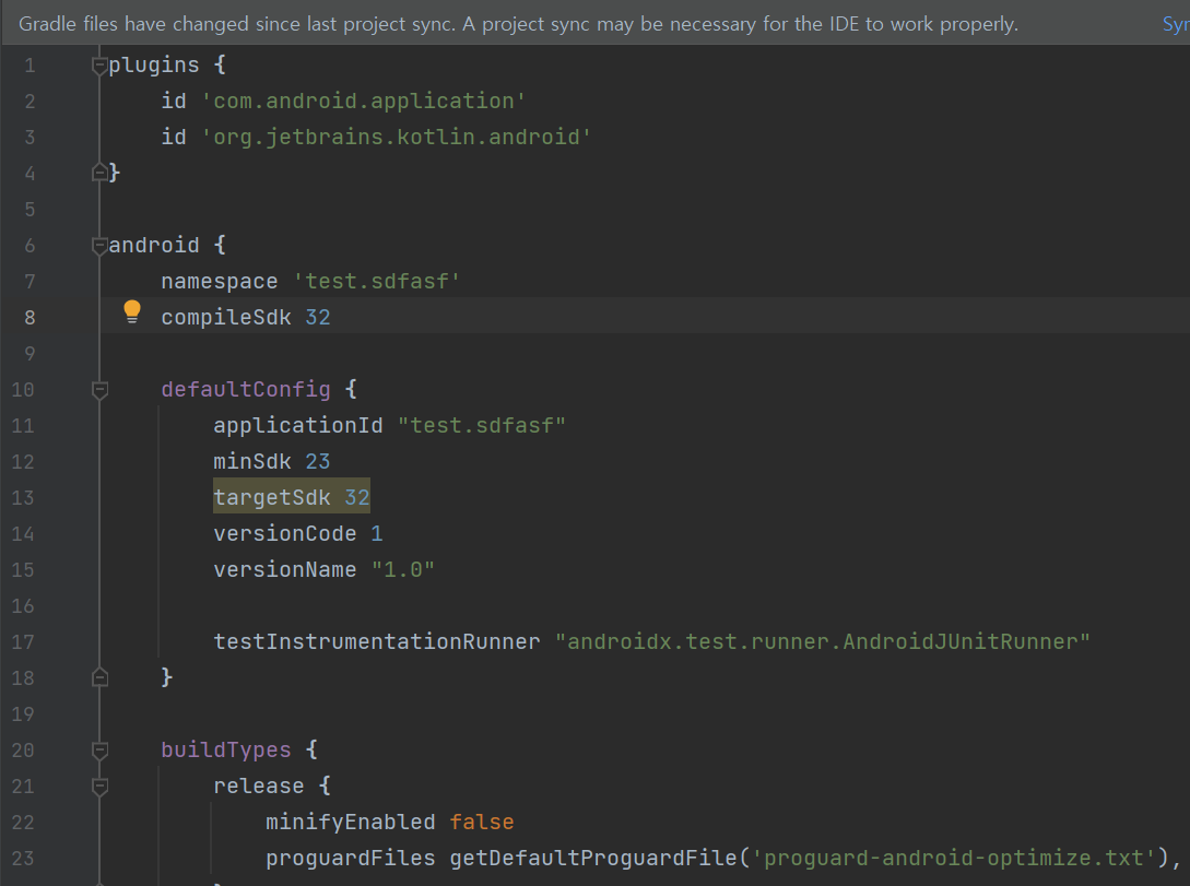 저는 위와 같은 Gradle(app) 코드가 완성되었습니다