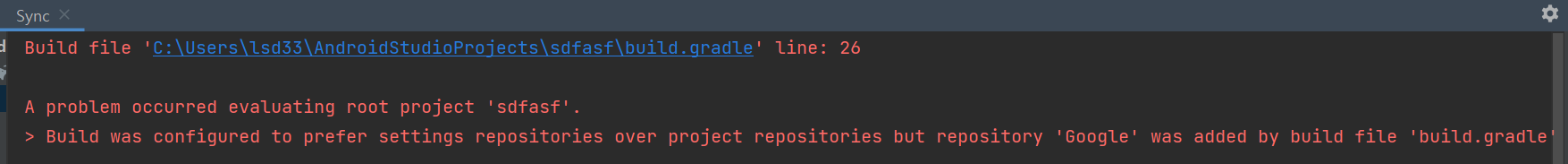 Build was configured to prefer settings repositories over project repositories but repository 'Google' was added by build file 'build.gradle'