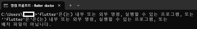 🔥 오류 1. "flutter은(는) 내부 또는 외부 명령... 아닙니다"