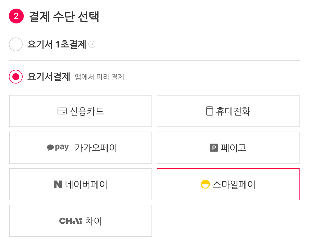 요기요를 사용하시는 분이라면 요기요 주문창에서 결제 수단 선택이 있는 것을 확인 할 수 있는데요