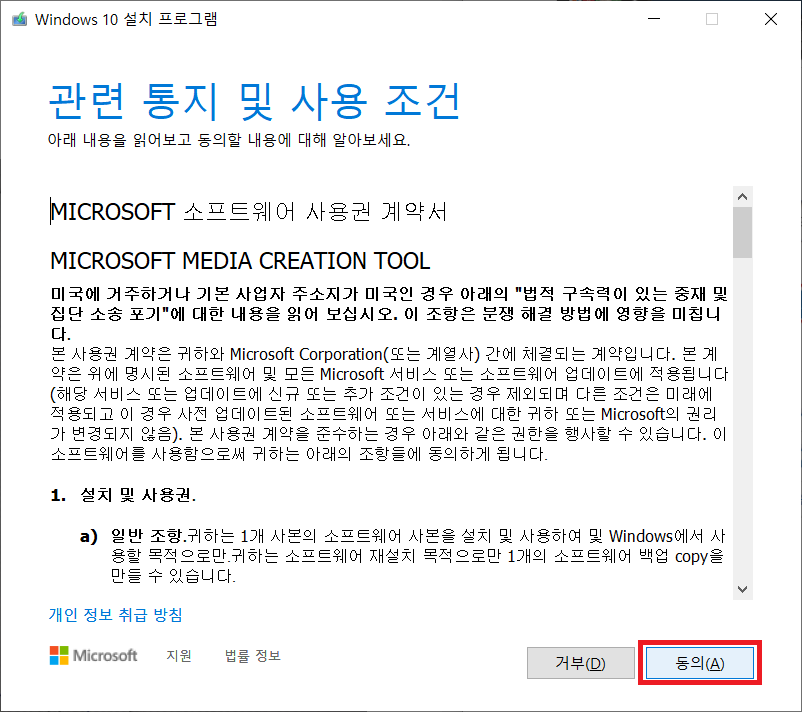 동의(A)를 눌러줍니다